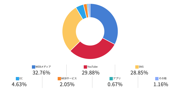 このように見てみると、実はWEBサイトは掲載数全体の40%に過ぎず、アカウント売買が半分以上を占めています。中でも直近はYoutubeアカウント売買が活況で全体の3割近くとなっています。