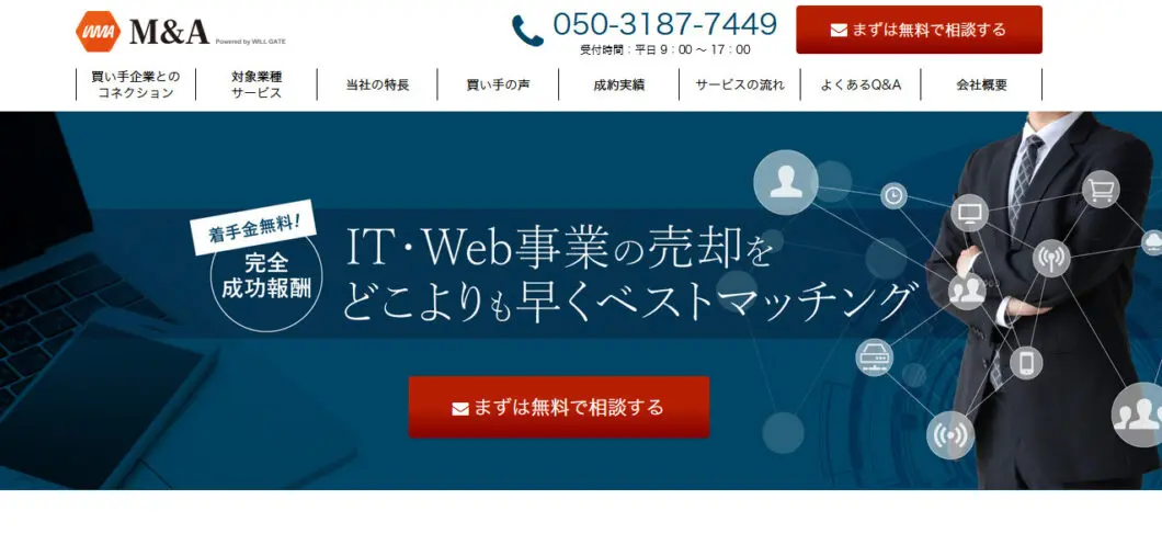 | 特徴 | ・掲載数・成約数No.1 ・売却手数料無料 | ・5秒で売買できる ・購入手数料無料 | ・成約率90%超 ・手厚いサポート | ・国内初の サイト売買サービス | ・累計成約数20億円 | ・非公開案件多数 | ・専任担当制 | ・10億円以上の 成約実績あり | ・世界最大の サイト売買サービス |
