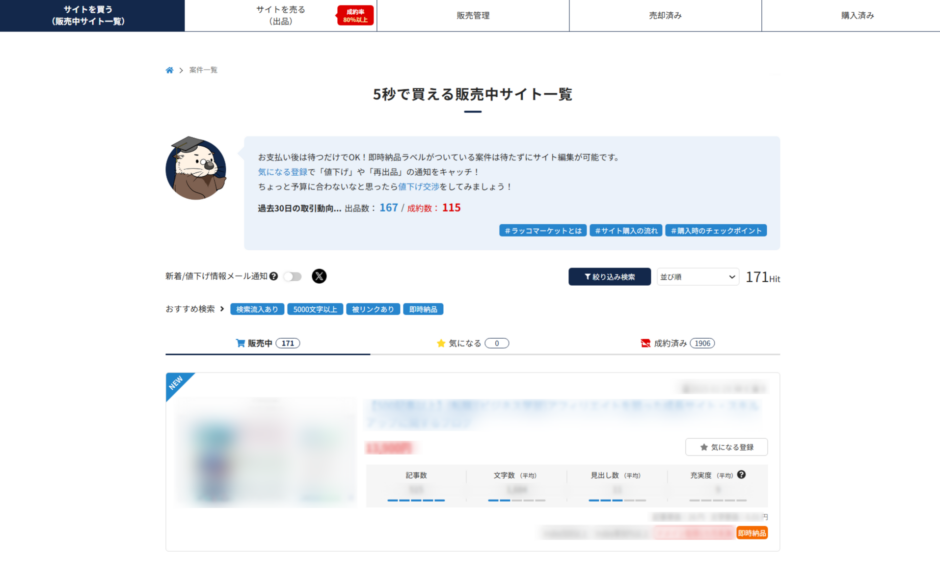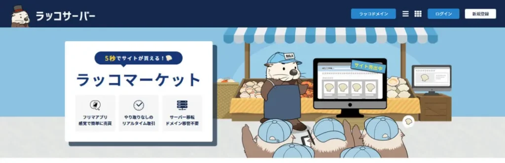 ラッコマーケットは、「最短5秒でサイトを購入できる」小規模サイト売買サービスです。