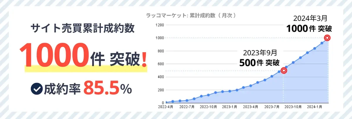 ラッマーケットは2022年4月のサービス開始から2年で累計成約数は1000件を突破しました。その間の成約率は85%超えと業界トップレベルです。