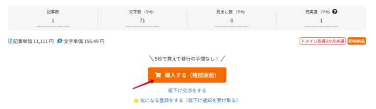SEO情報やその他のデータの詳細を確認して、問題なければ「購入する」を押します。